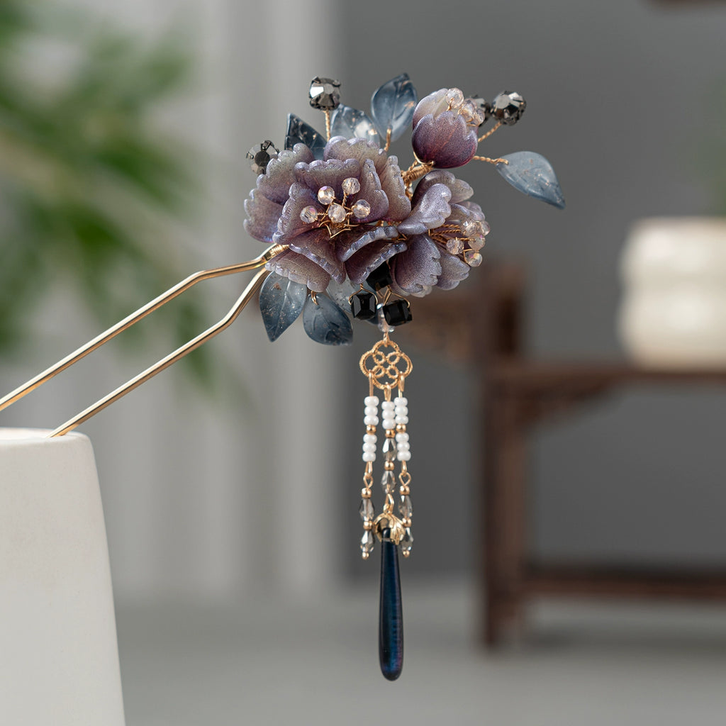 Ink Cloud Black and Purple Ancient Style Hair Stick