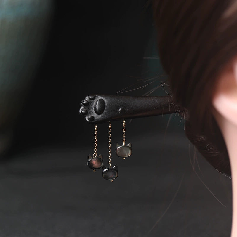 Lucky Cat Paw Cute Mother-of-Pearl Inlay Ebony Hair Stick