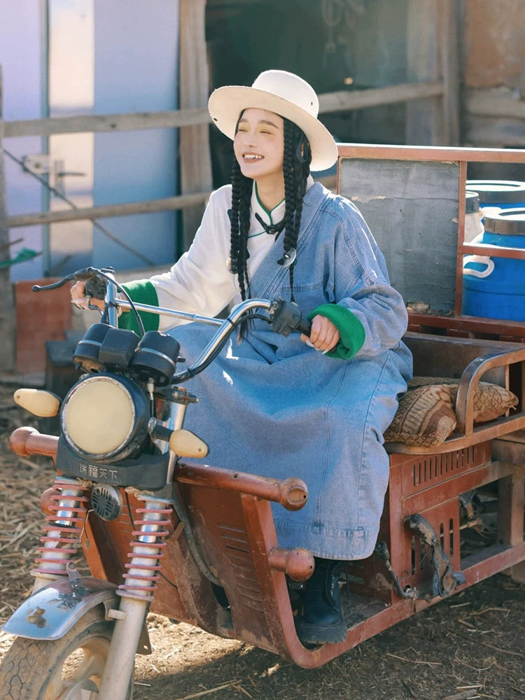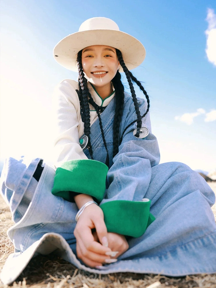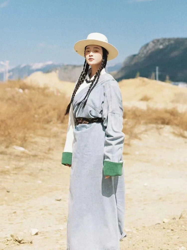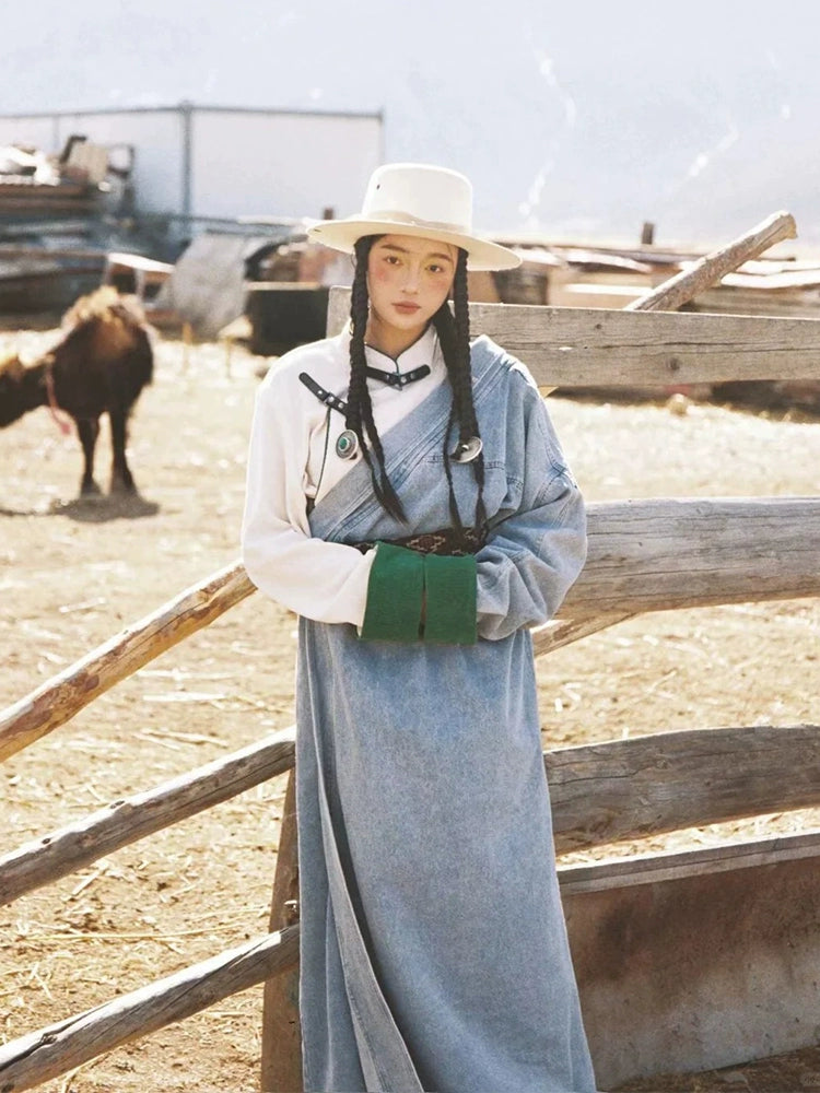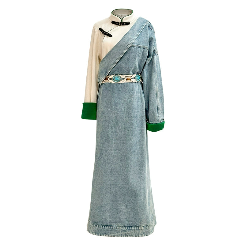 Blue Plateau - Women Tibetan Costume Improved Denim Robe for Photography & Festivals