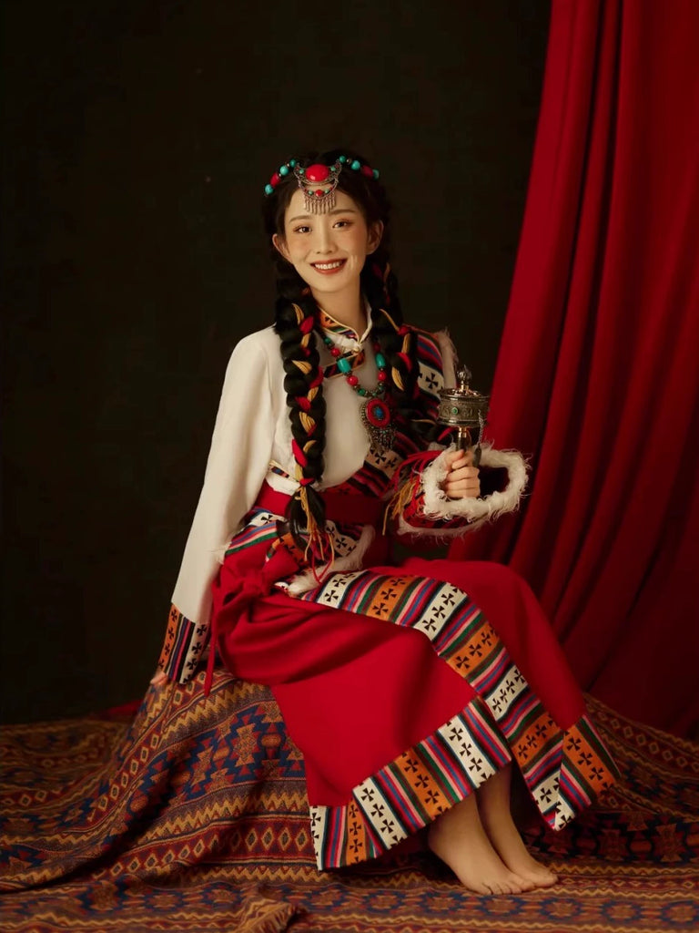 Sacred Blossom - Traditional Tibetan Robe Embroidered Ethnic Dress