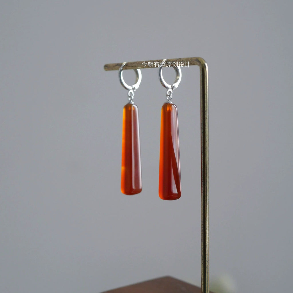Red Agate Geometric Chinese Style Earrings