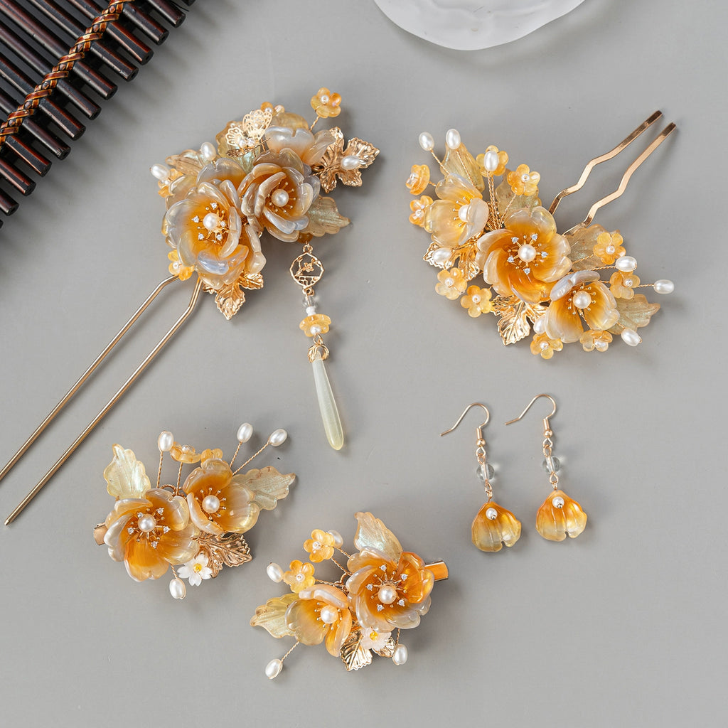 Amber Glow of Autumn - Hanfu Hair Stick & Accessories Set, Classical Chinese Hair Ornaments