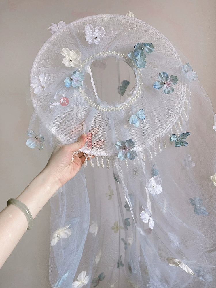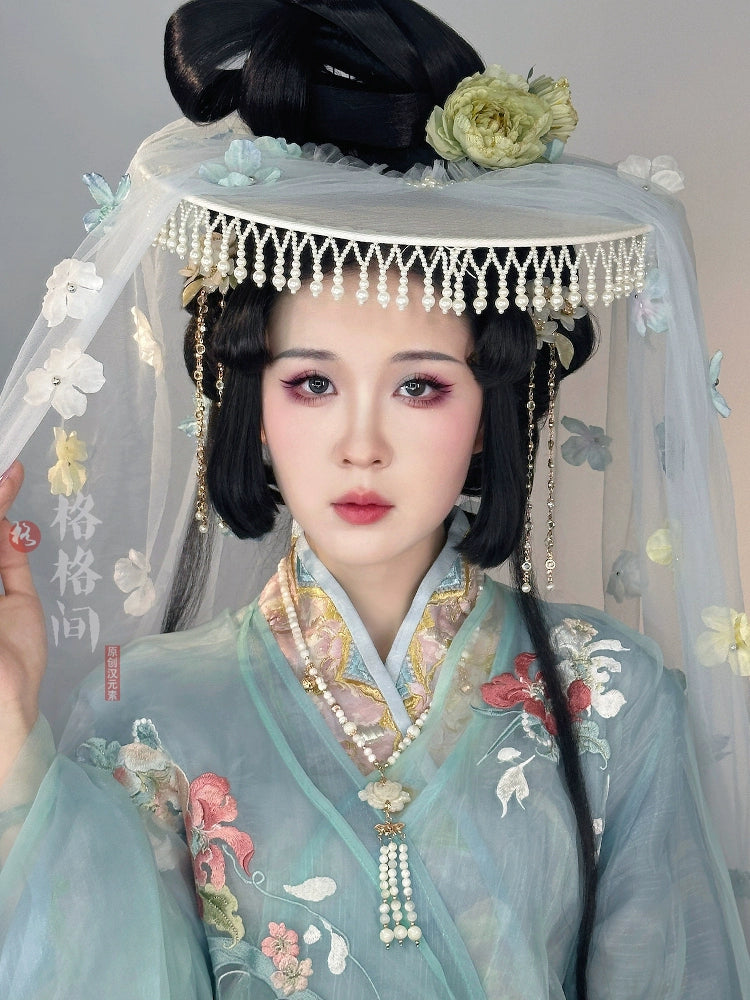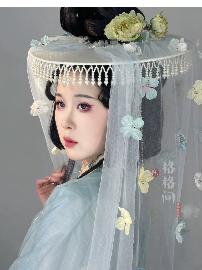 Flower Curtain Veil Hat (帷帽) - Tang Style with Flower Tassels