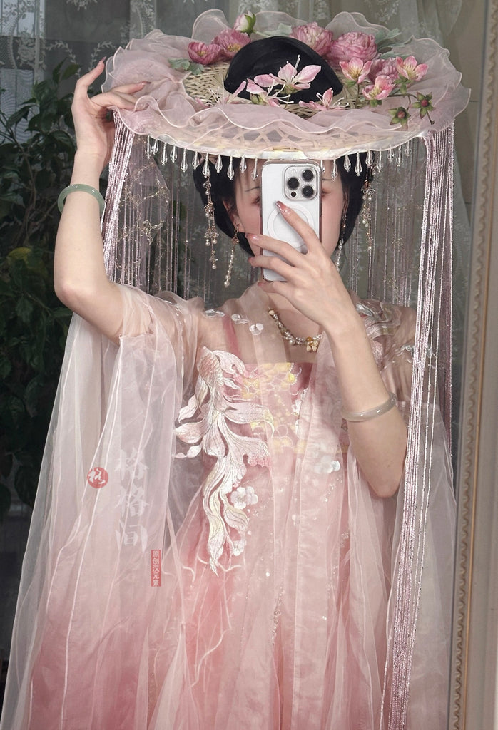 Peony Flowers Bamboo Veil Hat (斗笠)
