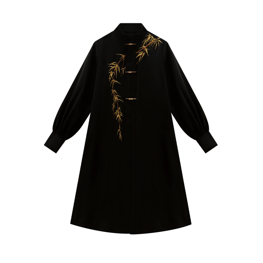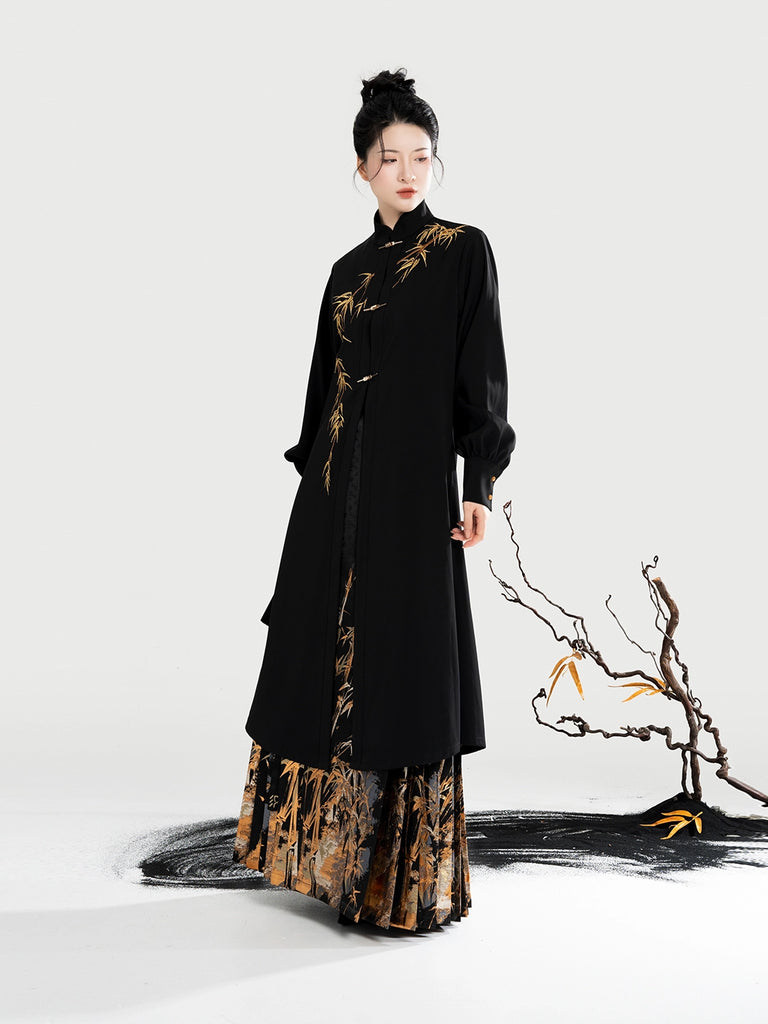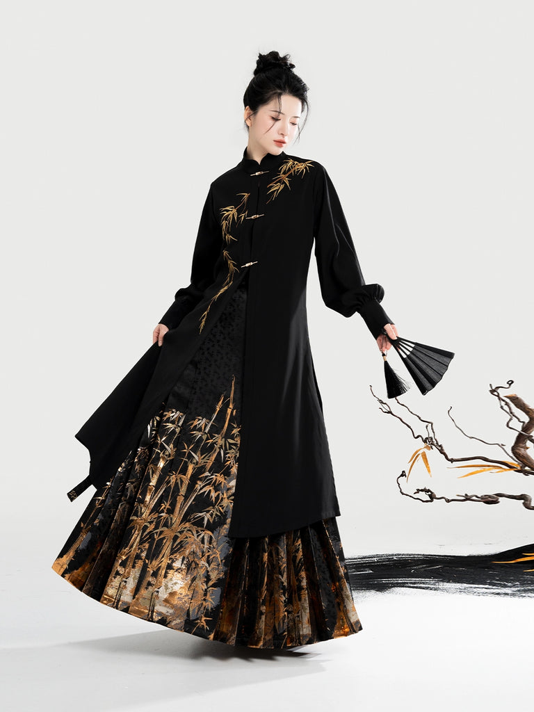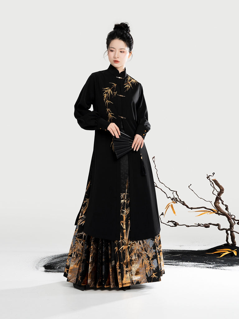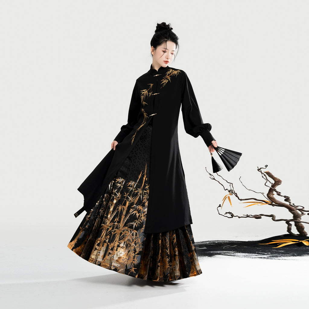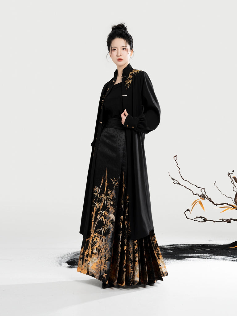 Golden Ink Bamboo 金墨竹 - Modern Ming Dynasty Hanfu Jacket with Brocade Woven Gold Mamianqun (Preorder)