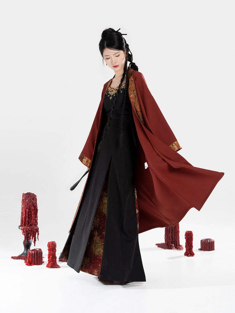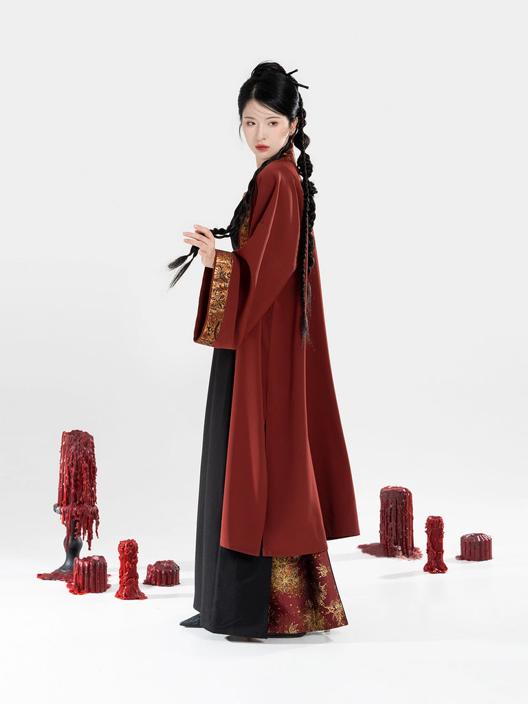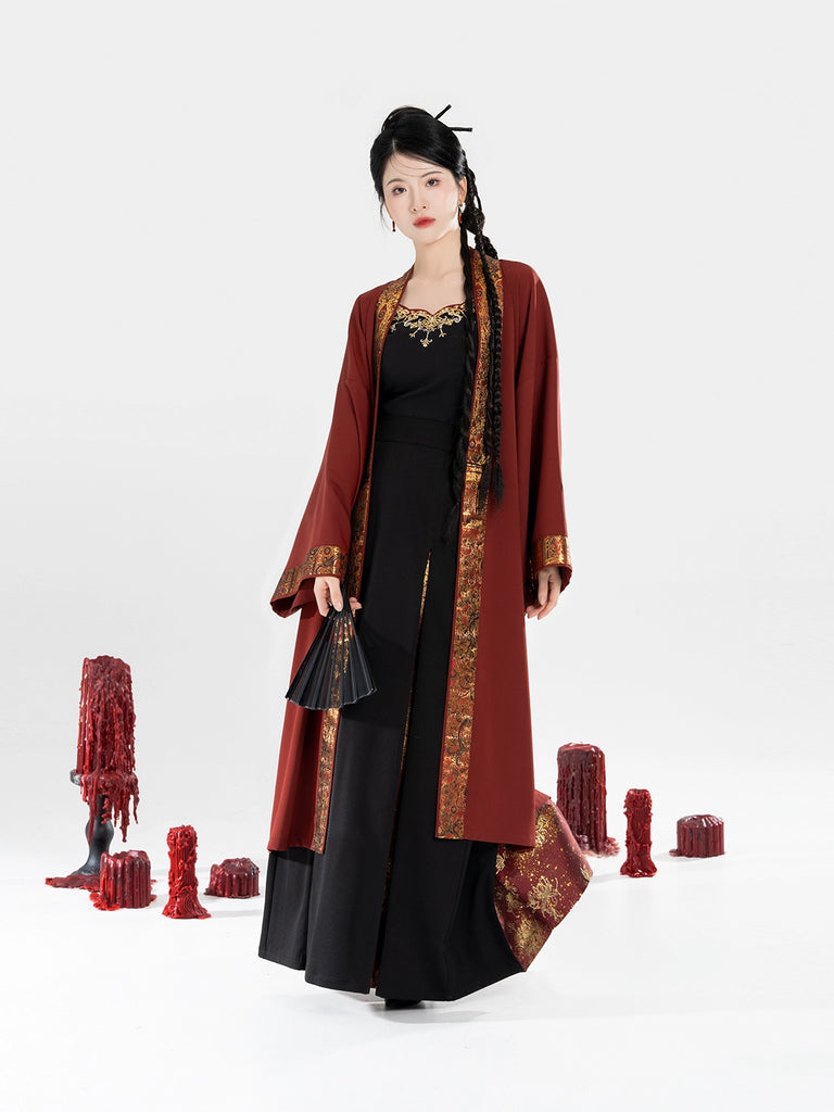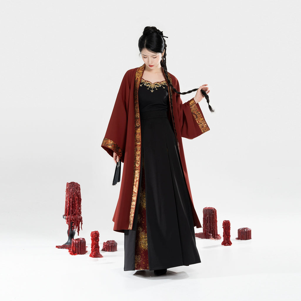 Holy Candle 圣烛 - New Song Dynasty Hanfu Long Overcoat with Camisole and Triple-Pleat Skirt (Preorder)