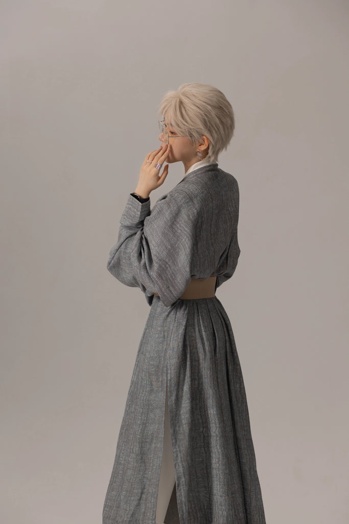 This round-neck robe, inspired by the Tang dynasty, is incredibly versatile for everyday wear.