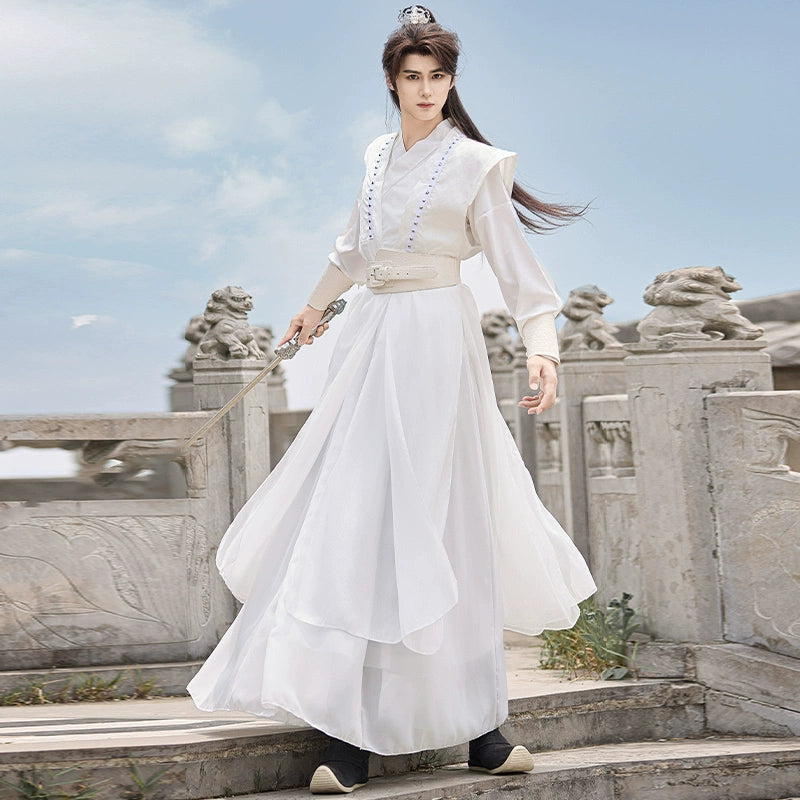 Zhan Beichen 战北尘 - Mens Wei-Jin Style Hanfu with Flowing Wide Sleeves, Ethereal Hero Look