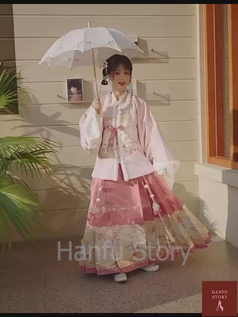 Flower Banquet 团花小宴 - Pipa Sleeve Top & Mamianqun Ming Dynasty Hanfu Set