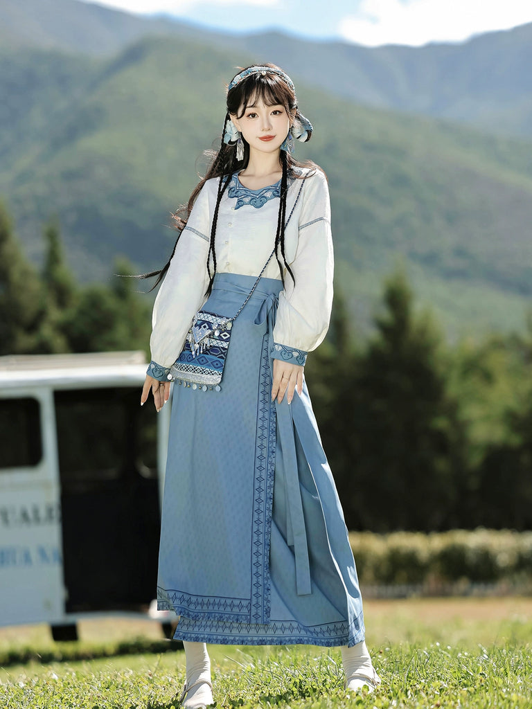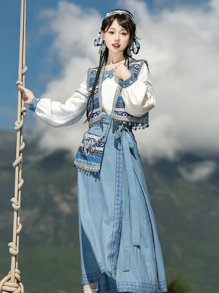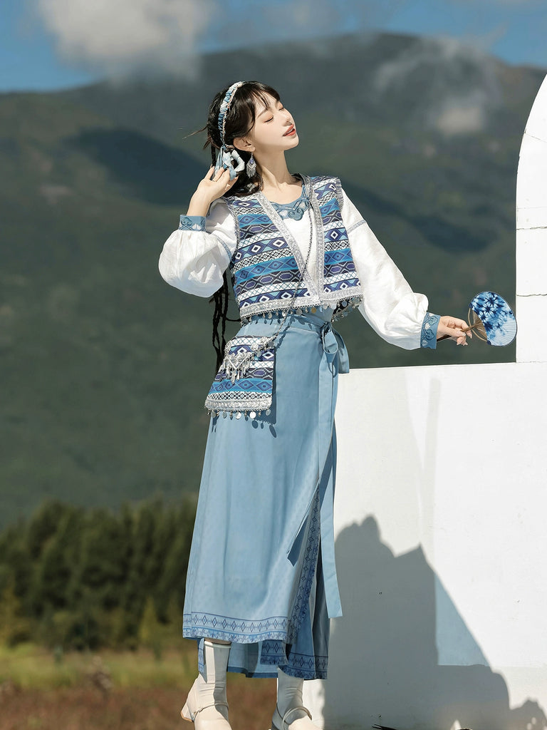 Fulan 潋滟浮兰 - New Chinese Style Ethnic Wrap Skirt and Vest Outfit