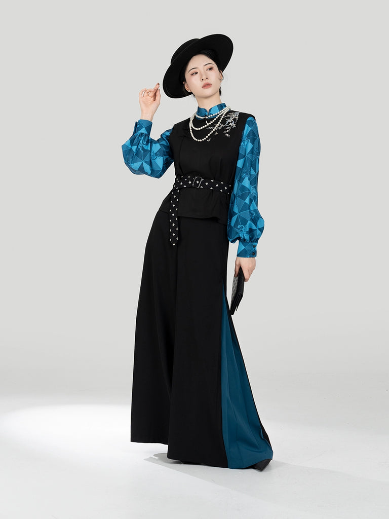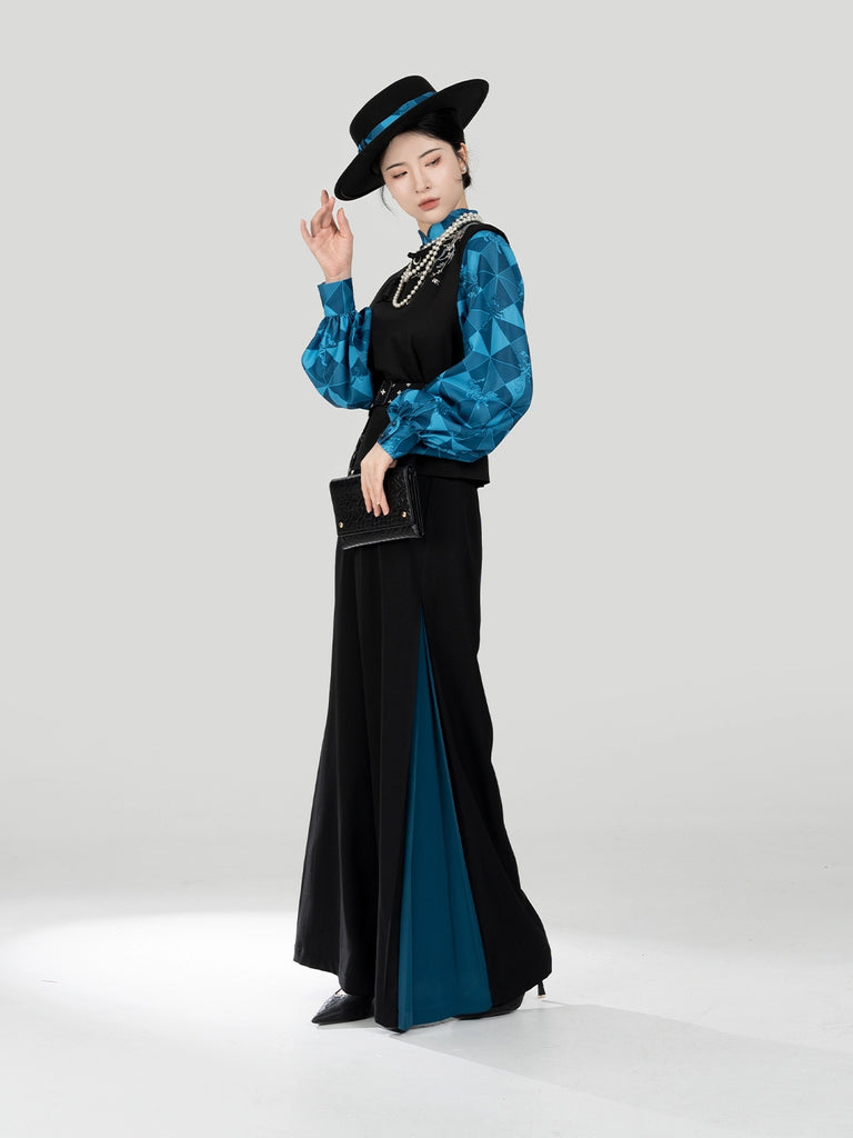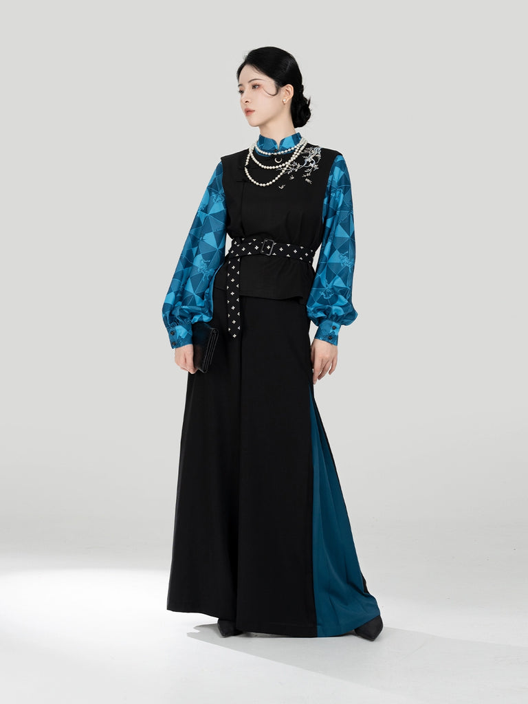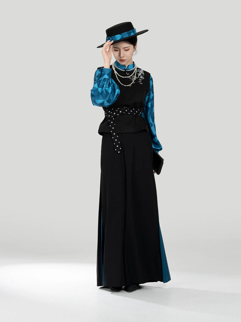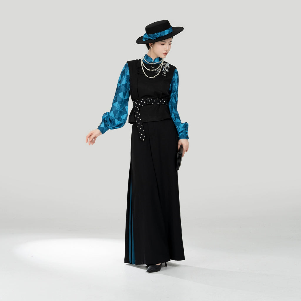 Luo Meiyin 落梅引 - Vest with Stand-Collar Shirt and Modern Song Dynasty Wide-Leg Pants (Preorder)