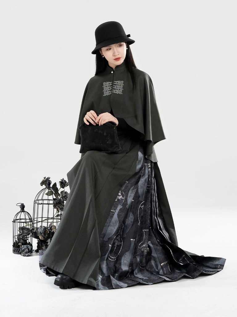 Mist Enamel 雾珐琅 - Modern Hanfu Cape and Mamian Skirt Outfit (Preorder)
