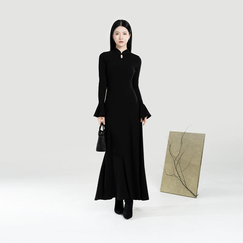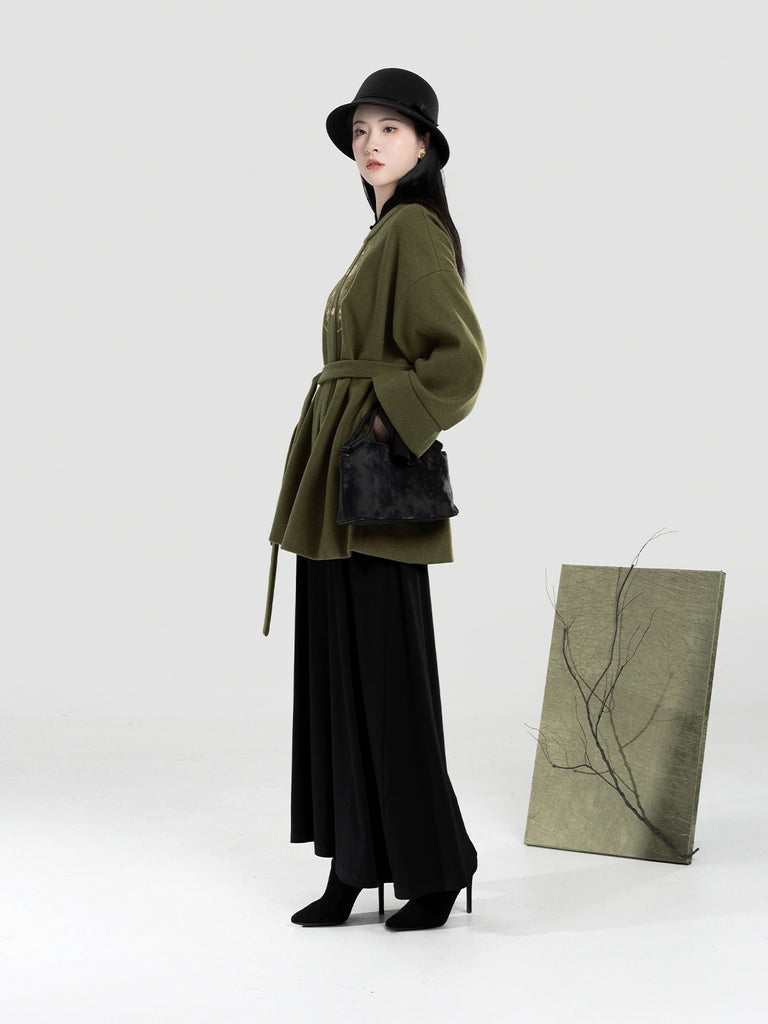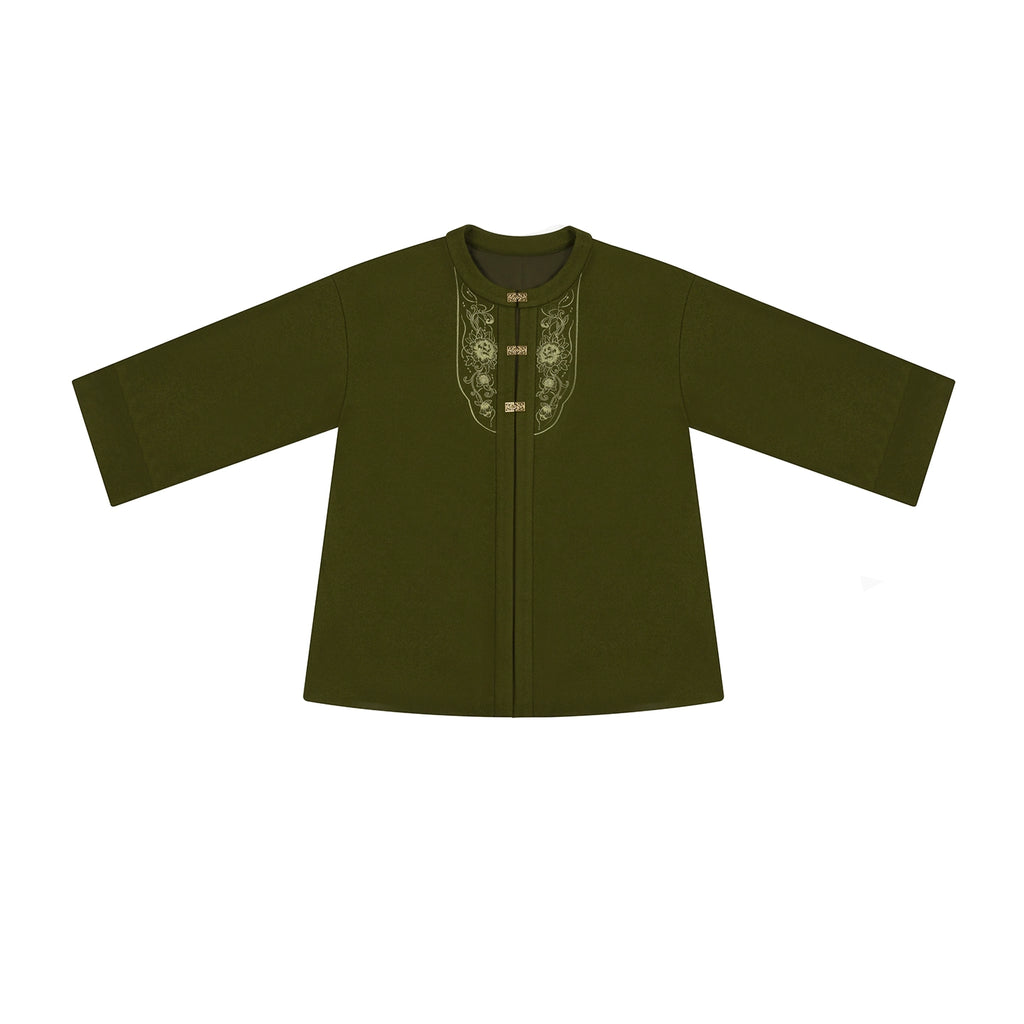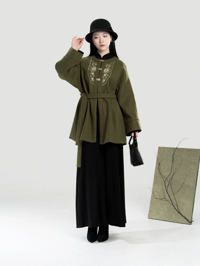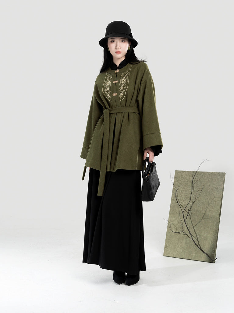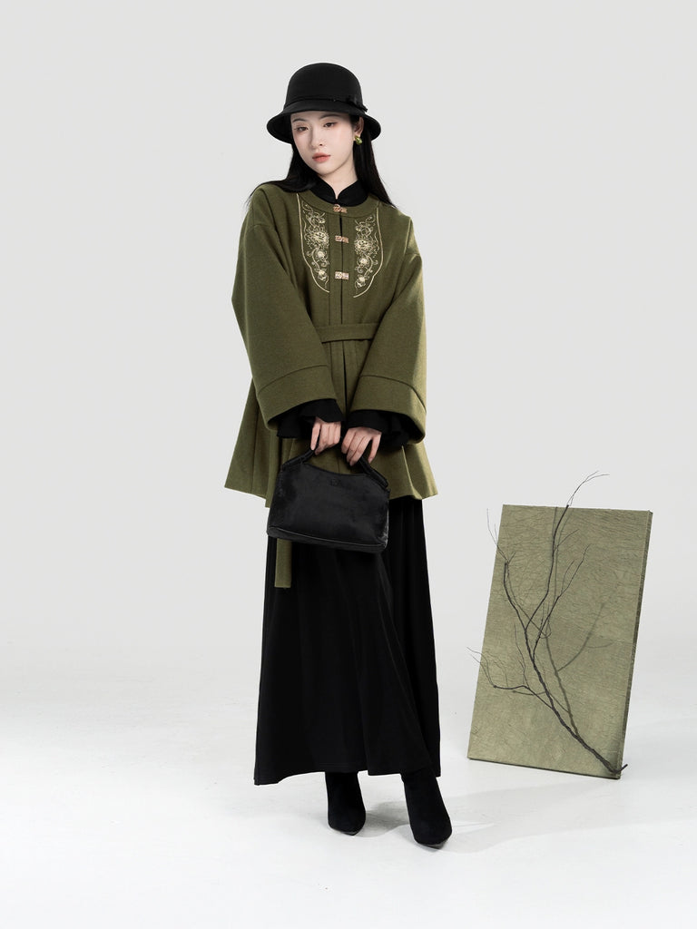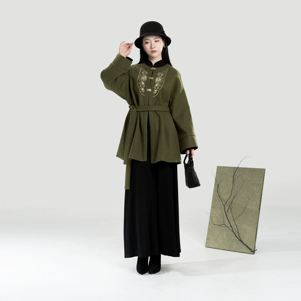 Moss Stone 苔石 - Modern Hanfu A-Line Maxi Dress with Round Collar Coat (Preorder)