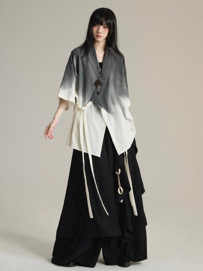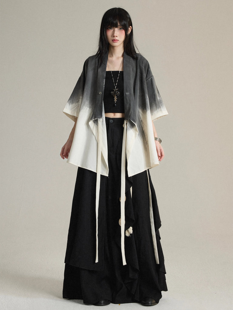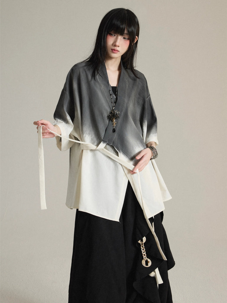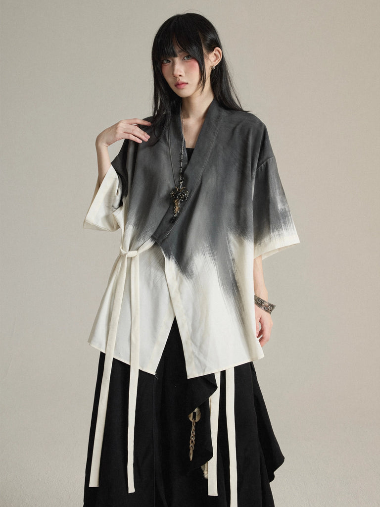 New Chinese Daoist-Robe Inspired Tie-Dye Short-Sleeve Shirt Jacket Unisex