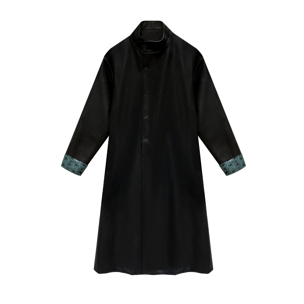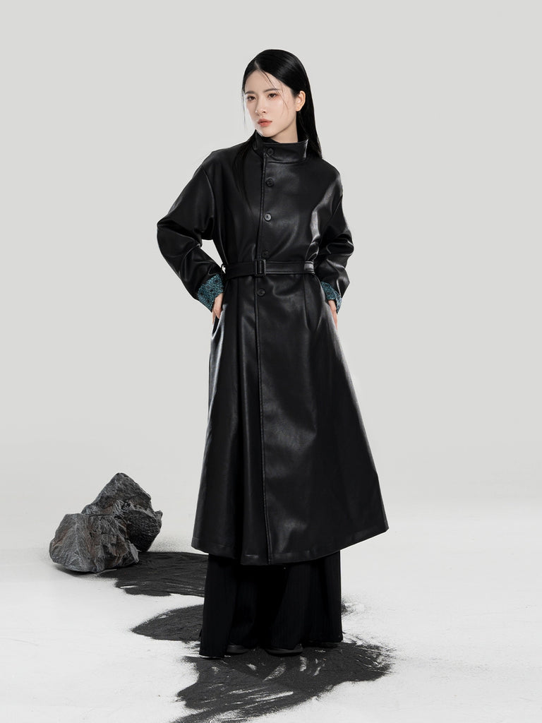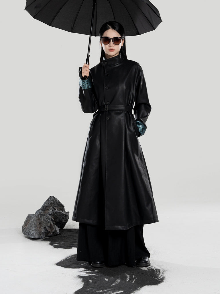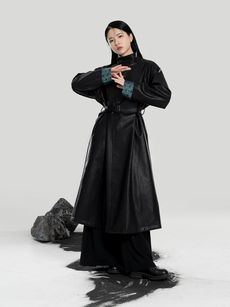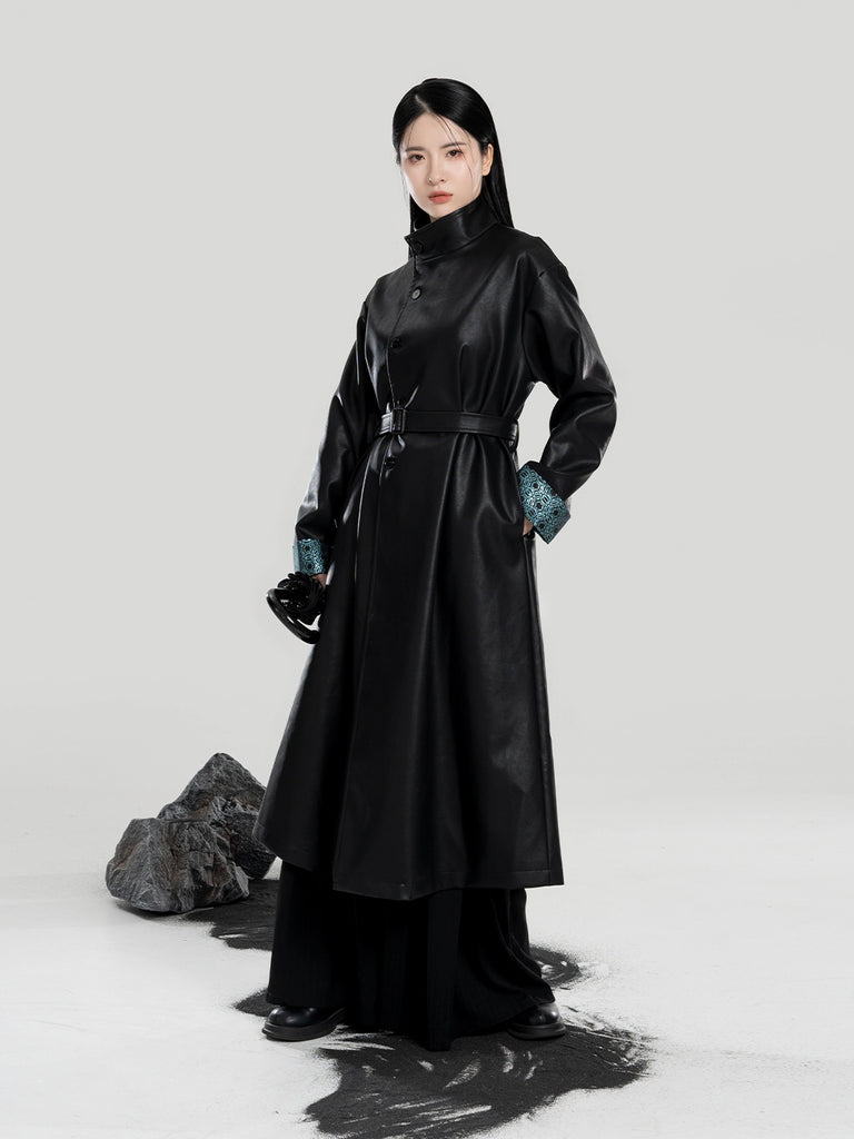Yelan 夜澜 - Hanfu Inspired Long Leather Trench Coat (Preorder)