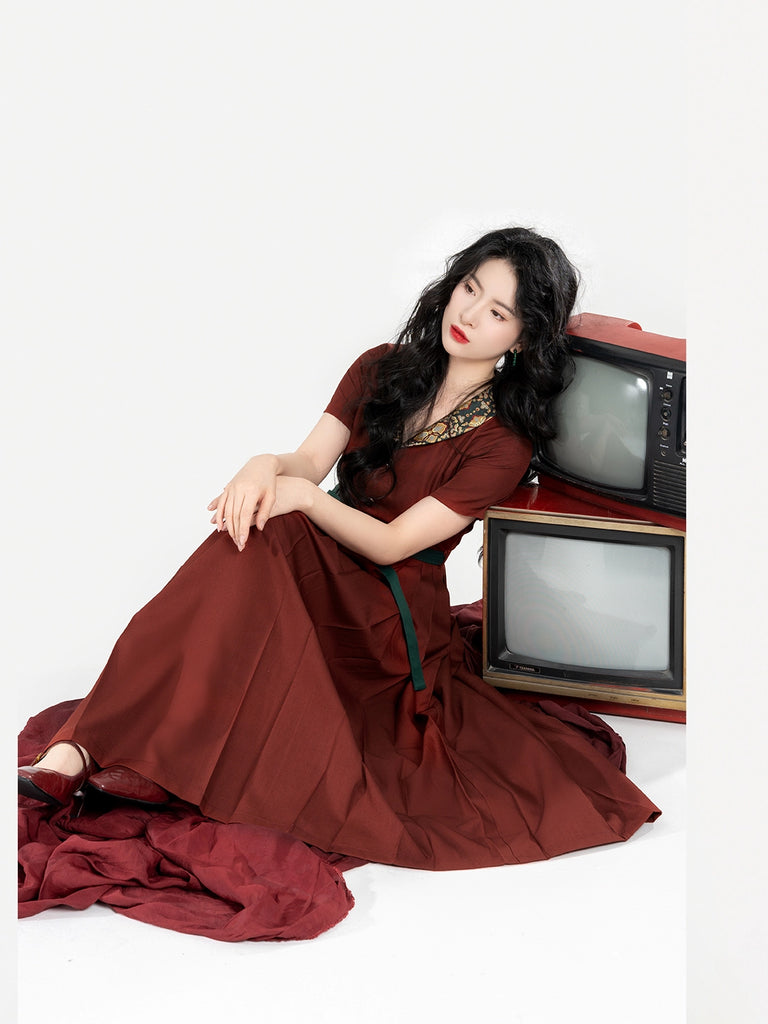 Zhu Tang 朱棠 - Modern Hanfu Ming Dynasty Mamianqun Dress with Traditional Floral Motifs (Preorder)