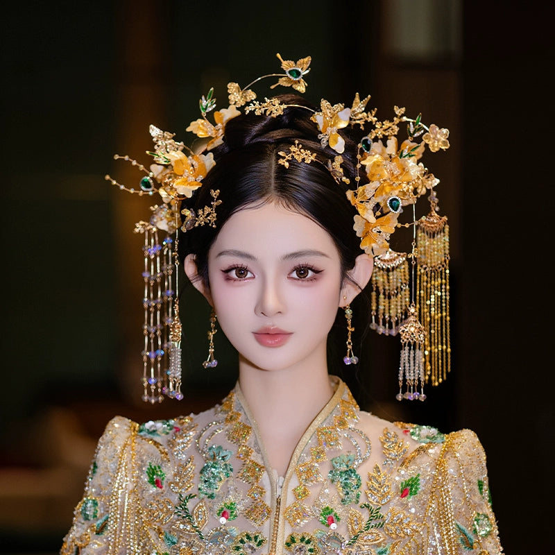 Radiance - Golden Floral Tassel Bridal Hairpin Elegant Fairy-Inspired Hanfu and Qipao Wedding Hair Accessory