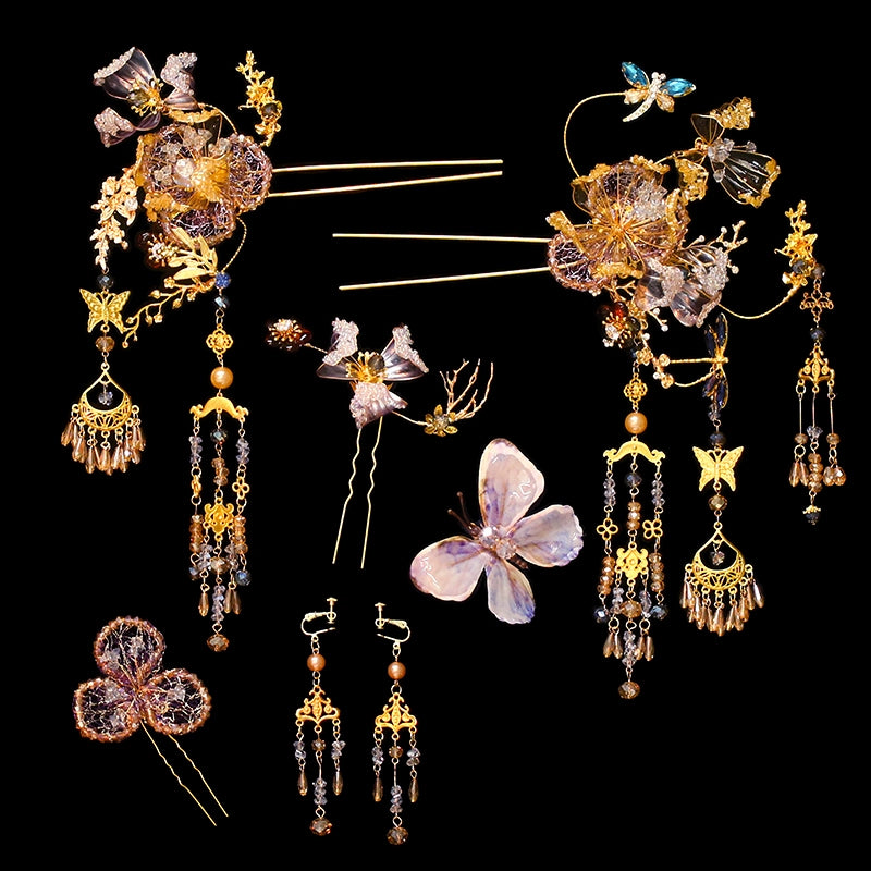 Butterfly Moonlight - Light-Toned Butterfly Tassel Bridal Hairpin Celestial New Chinese Style Wedding Headpiece