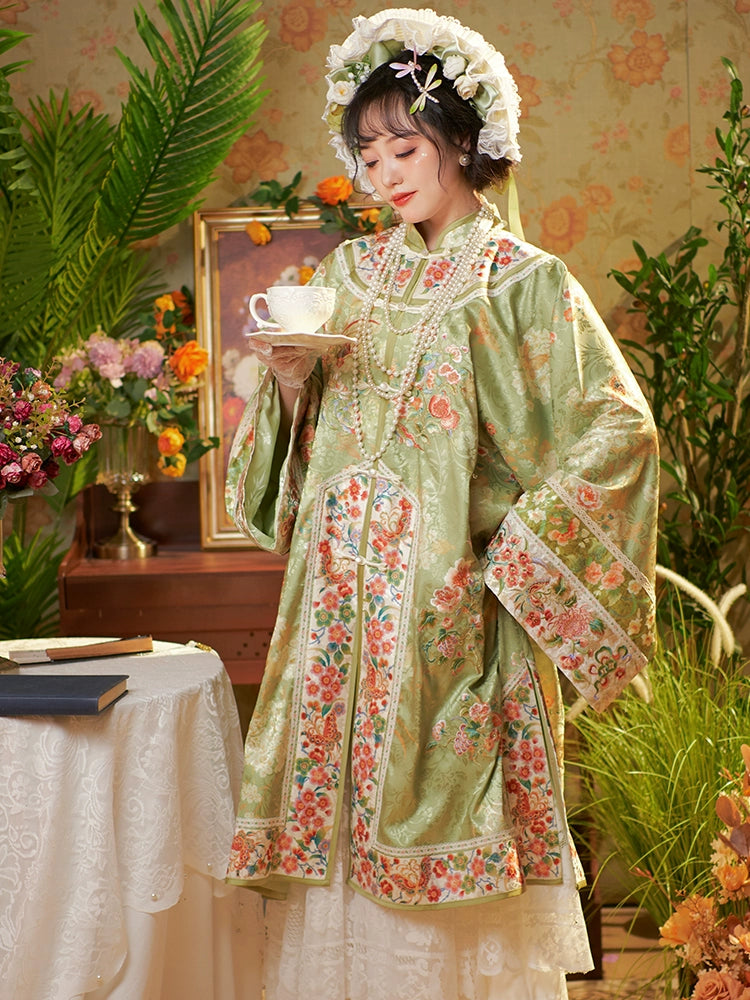 Blooming Spring 粉黛裁春 - Qing Dynasty Han Lady Embroidered Blouse (Preorder)