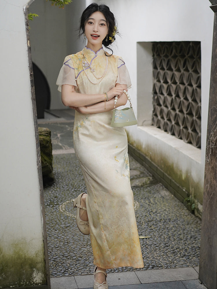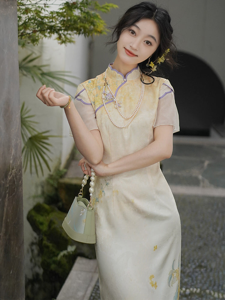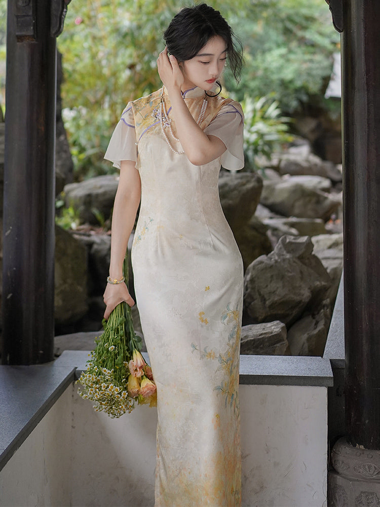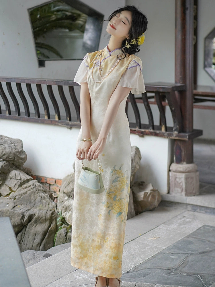 Guiling 桂灵 - Short Sleeve Long Cheongsam