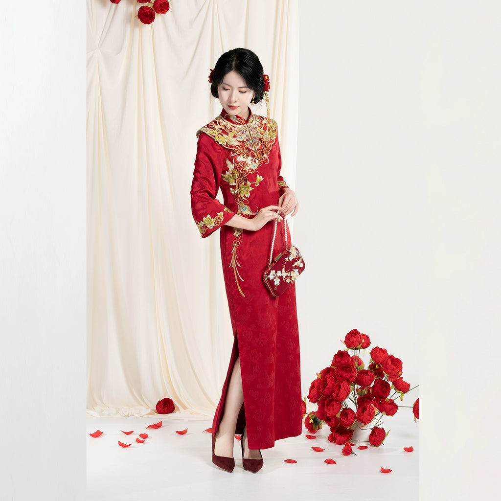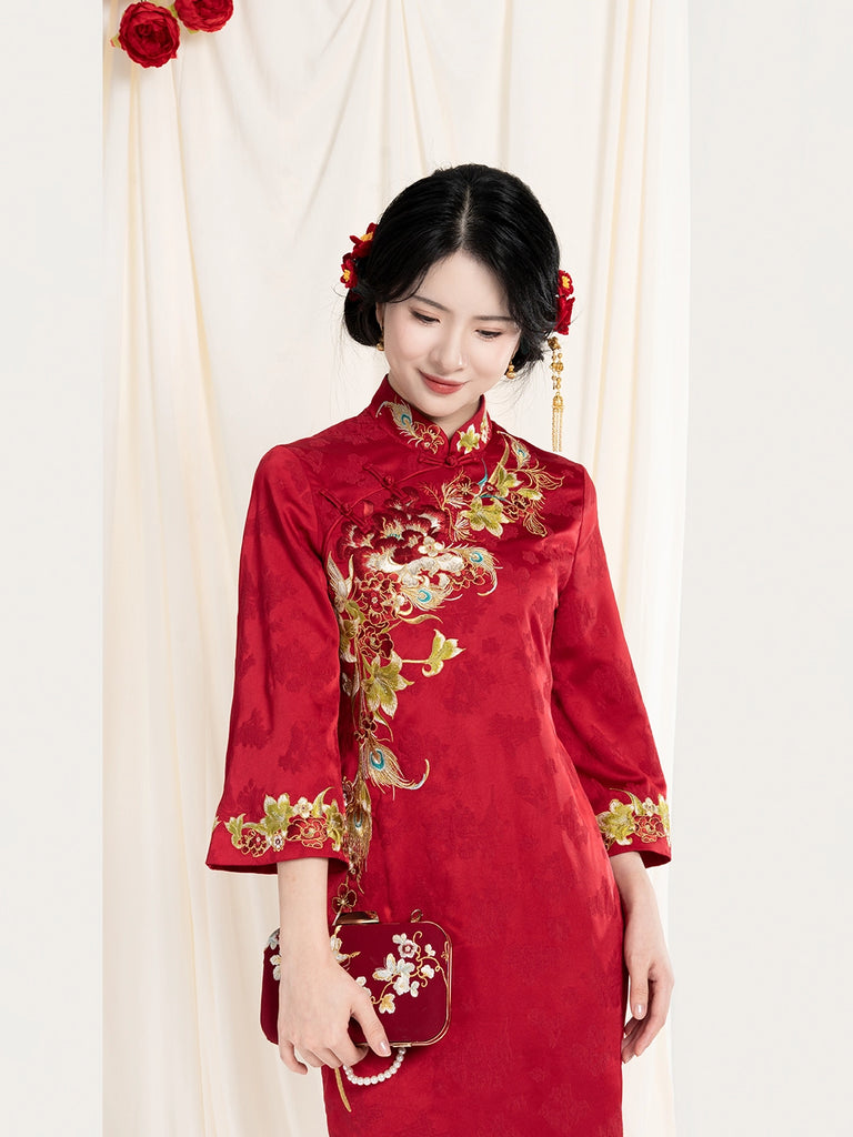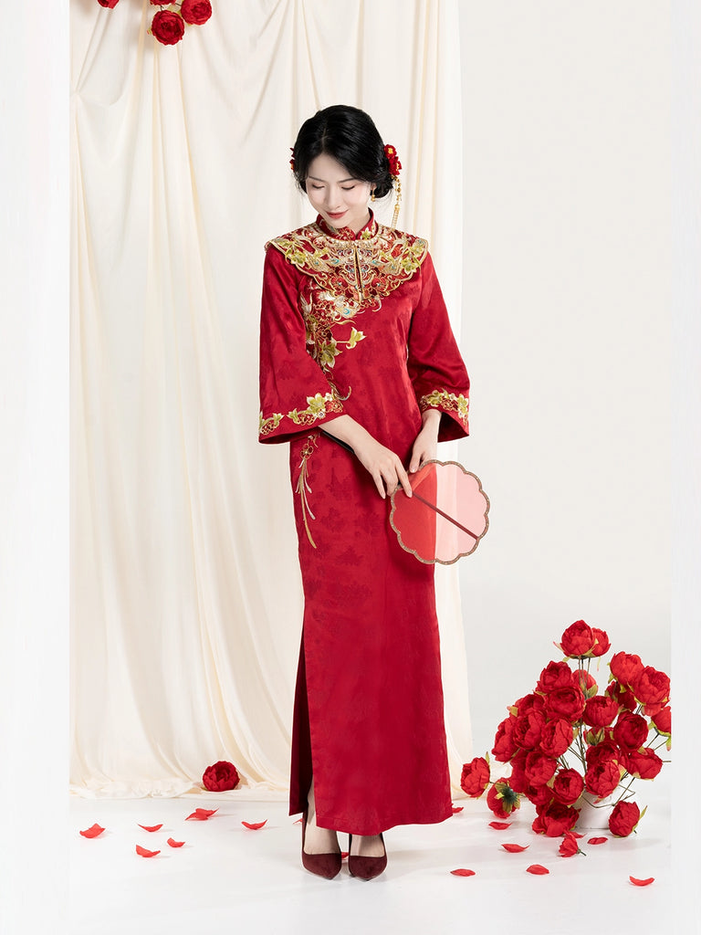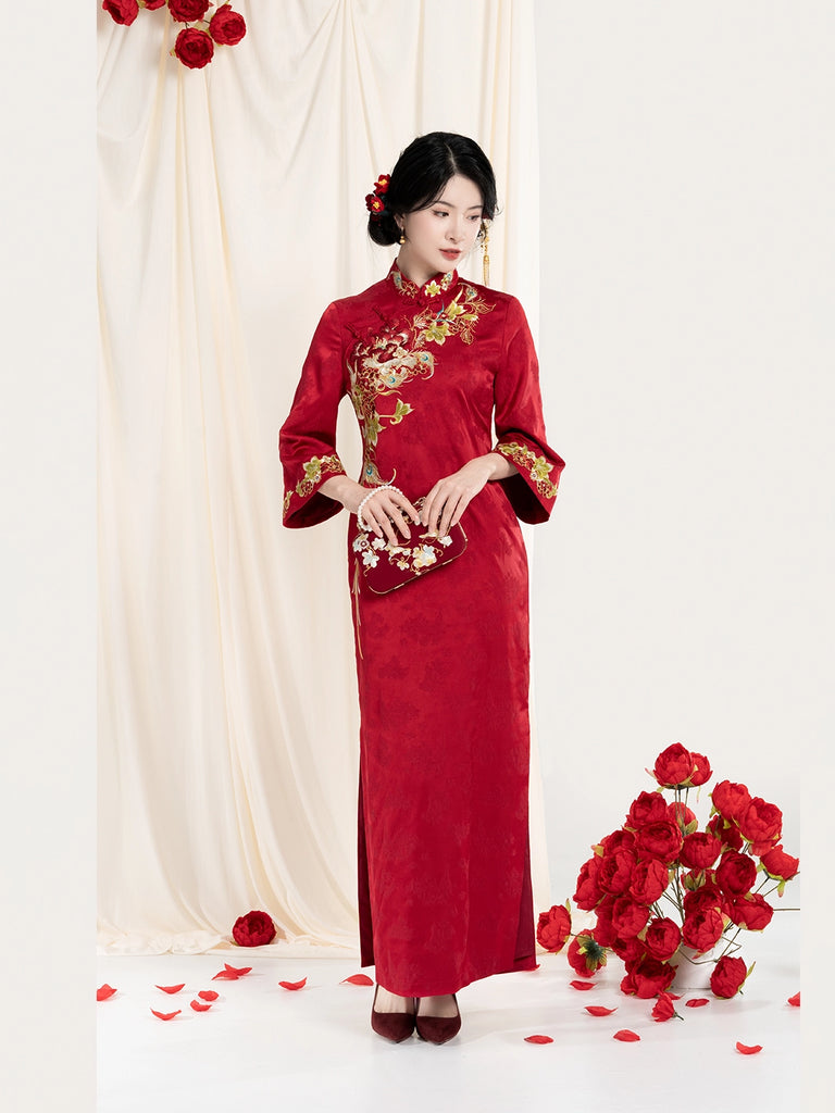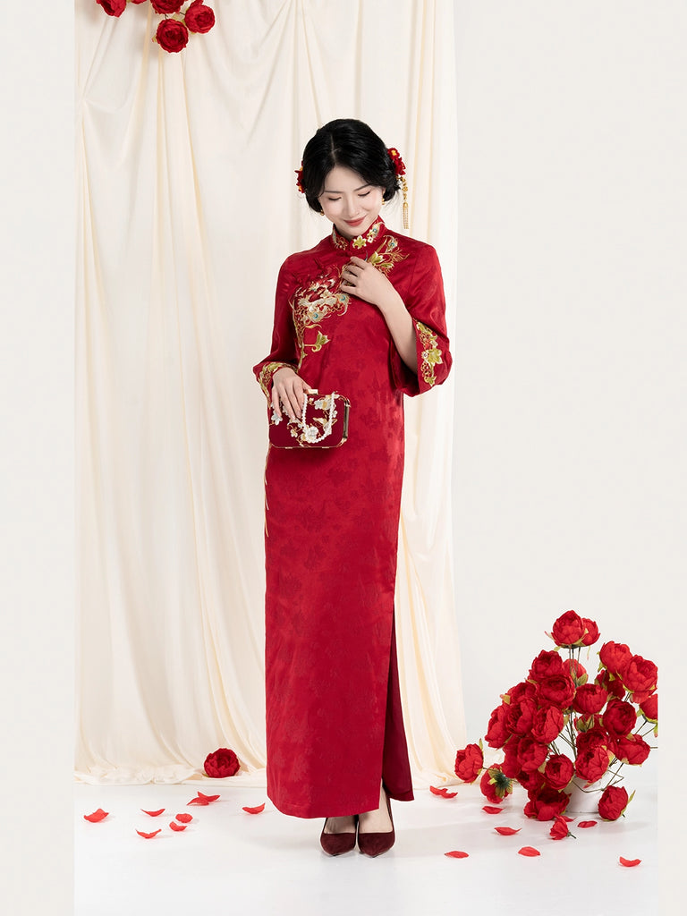 Joy of the Couple 佳偶之喜 - Half Sleeve Long Bridal Wedding Cheongsam (Preorder)