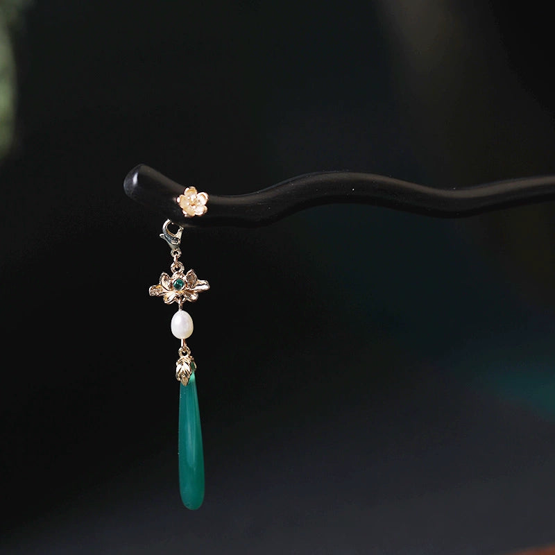 Lotus Picking Classical Ebony Pearl Hair Stick