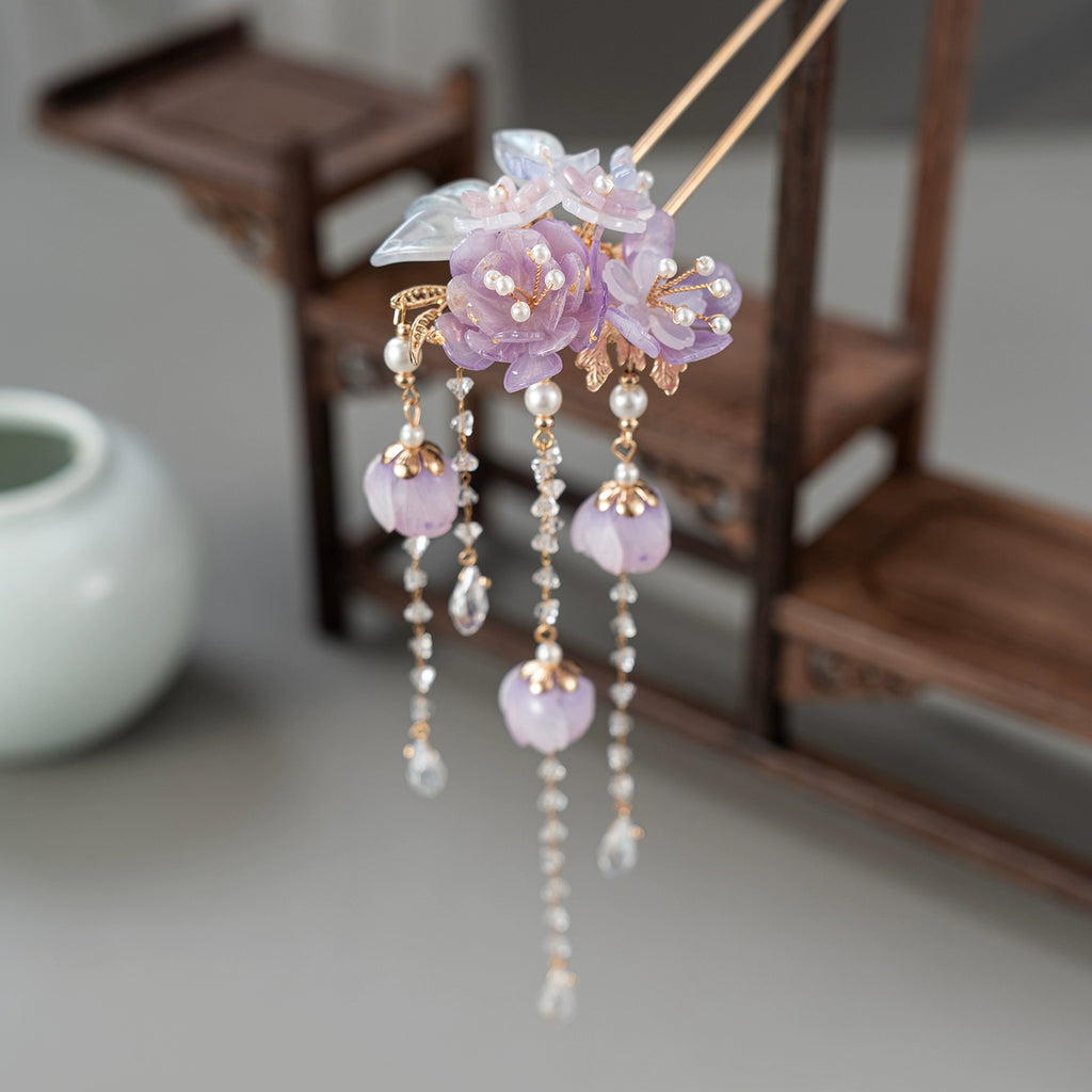 Purple Kite & Peony Hairpin Antique Hair Stick for Hanfu & Cheongsam