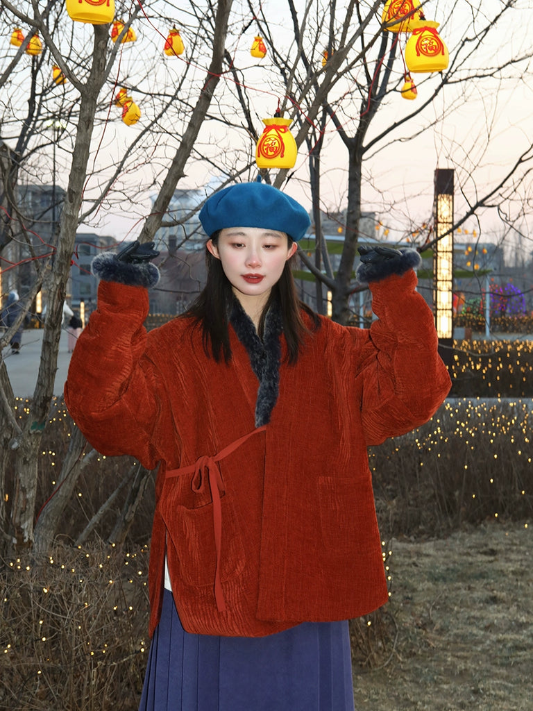 • Jacket (Made with chenille fabric with rex rabbit fur trim)