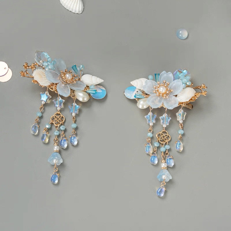 Hanfu hair accessories can vary widely in style, material, and design, but they all serve the purpose of enhancing the wearer's appearance and adding an extra touch of elegance to their hair. Some notable hair accessories commonly associated with Hanfu are hairpins (发簪, fāzān), hair combs (发篦, fābì), tassels (流苏, liúsū), hair ornaments (发髻, fājì), hairbands and headpieces (发饰, fāshì).