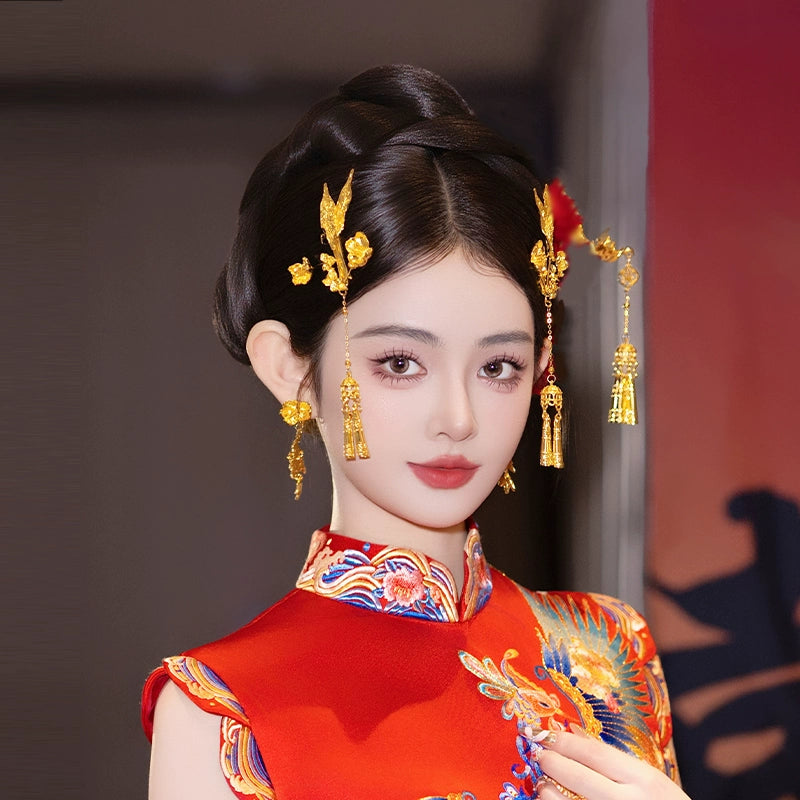 Complete your traditional Chinese wedding or tea ceremony look with our hair accessory sets, designed for brides. Each set features beautifully crafted hairpins, crowns, or headdresses, as shown in the photos, perfectly suited to complement your Hanfu, Cheongsam, or Qipao.