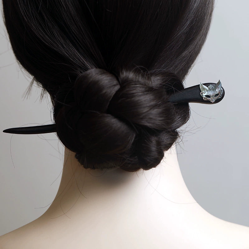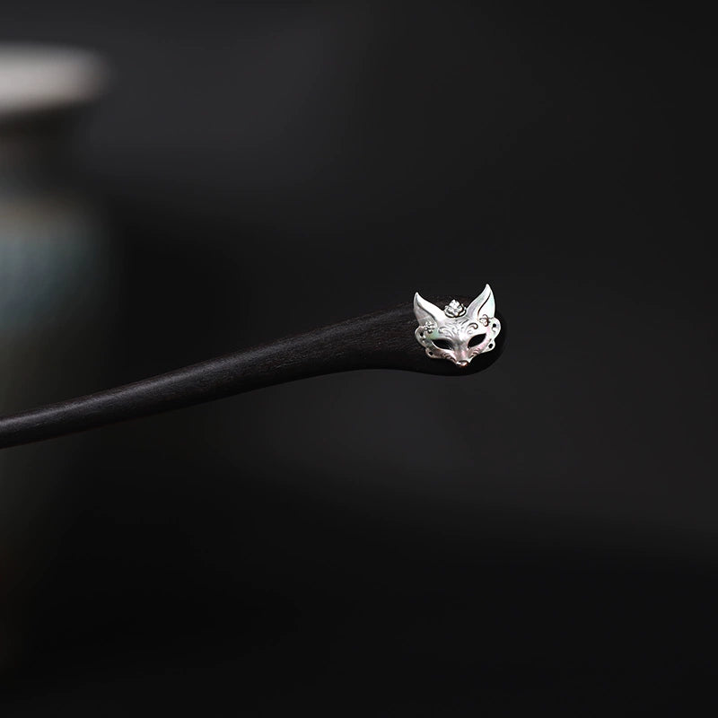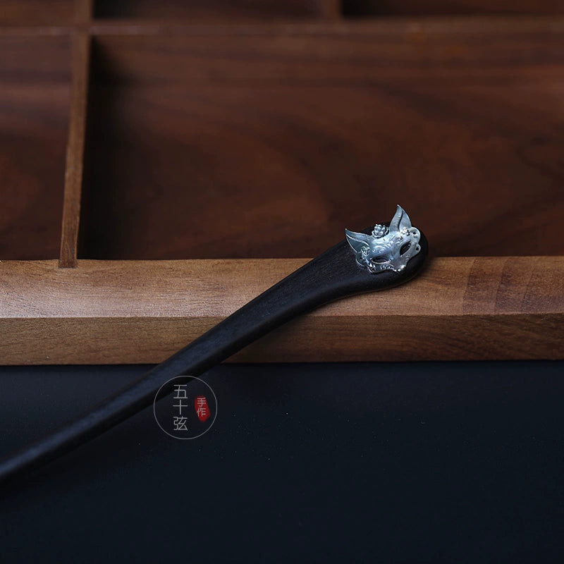 Mystic Fox Hand-Carved Mother-of-Pearl Ebony Hair Stick