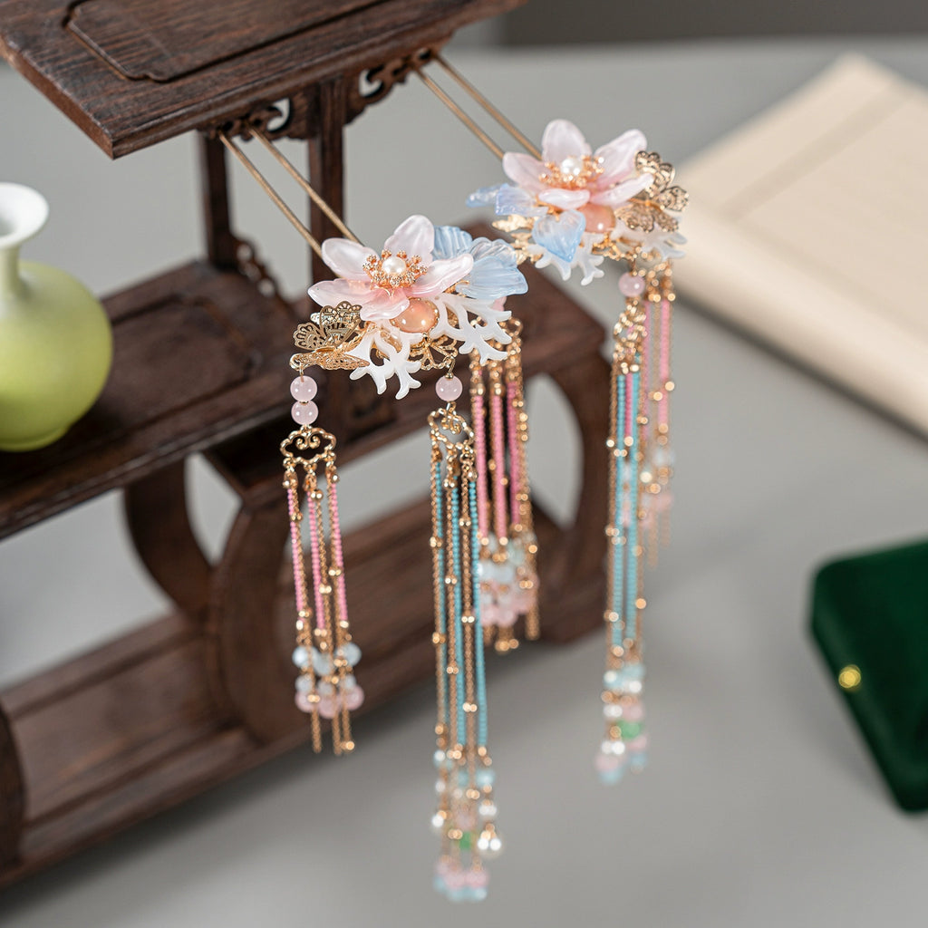 Pink & Blue Fairy Tassel Hairpin Handmade Ancient Style Hanfu & Cheongsam