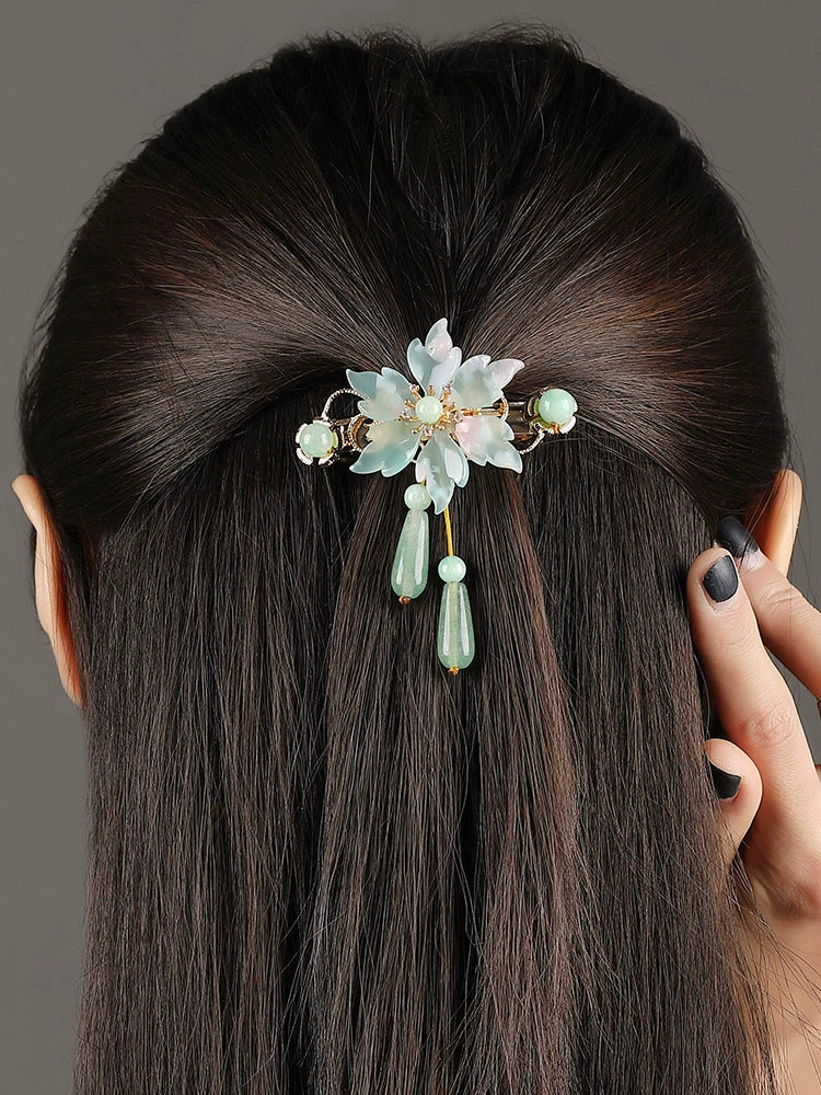 Hanfu hair accessories can vary widely in style, material, and design, but they all serve the purpose of enhancing the wearer's appearance and adding an extra touch of elegance to their hair. Some notable hair accessories commonly associated with Hanfu are hairpins (发簪, fāzān), hair combs (发篦, fābì), tassels (流苏, liúsū), hair ornaments (发髻, fājì), hairbands and headpieces (发饰, fāshì).