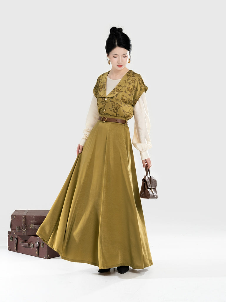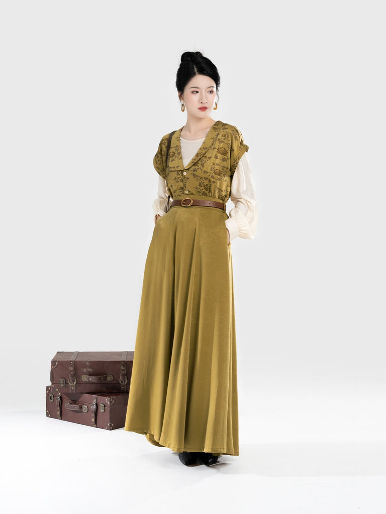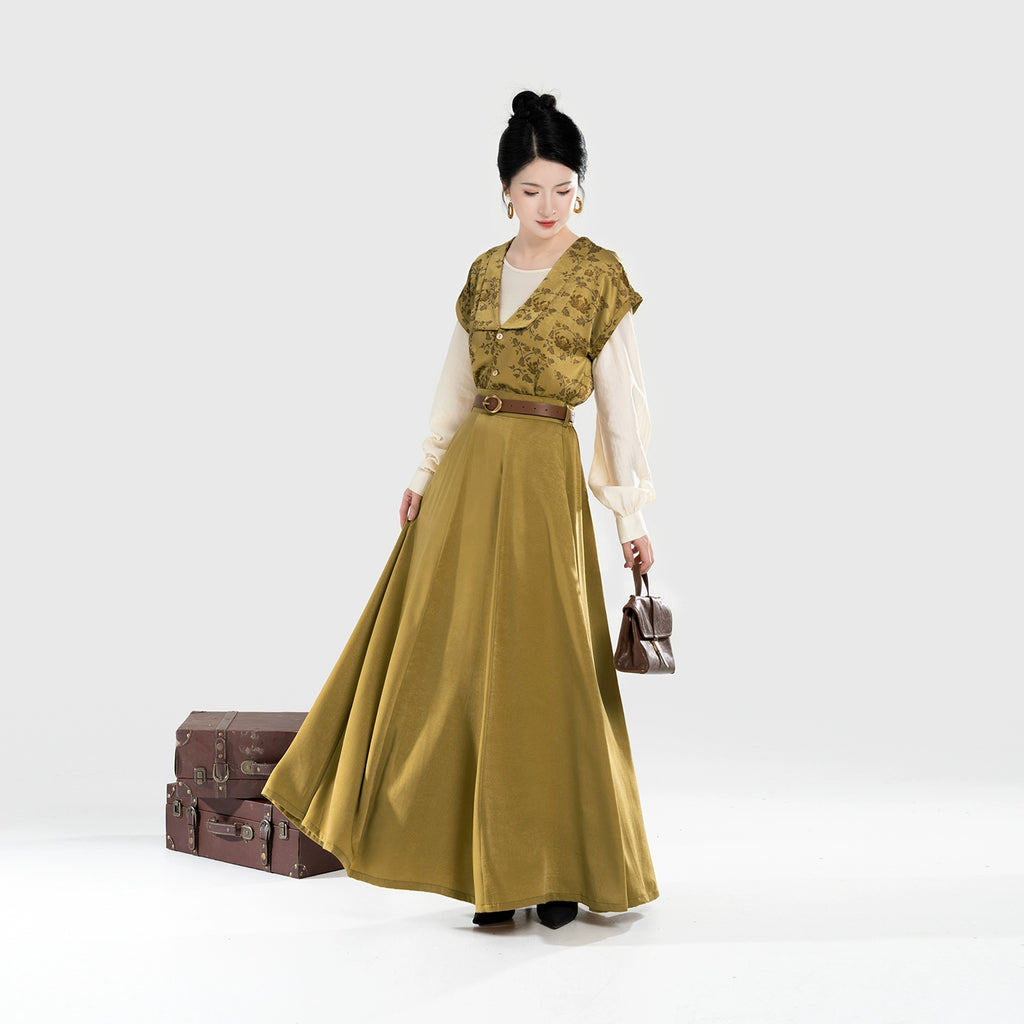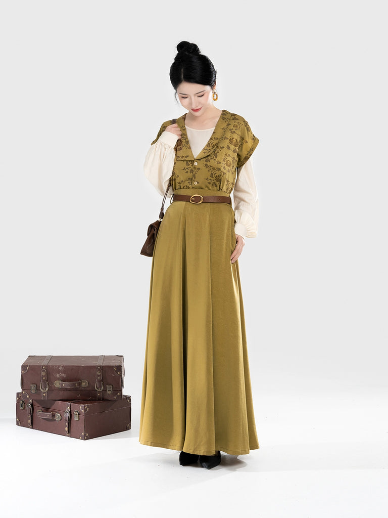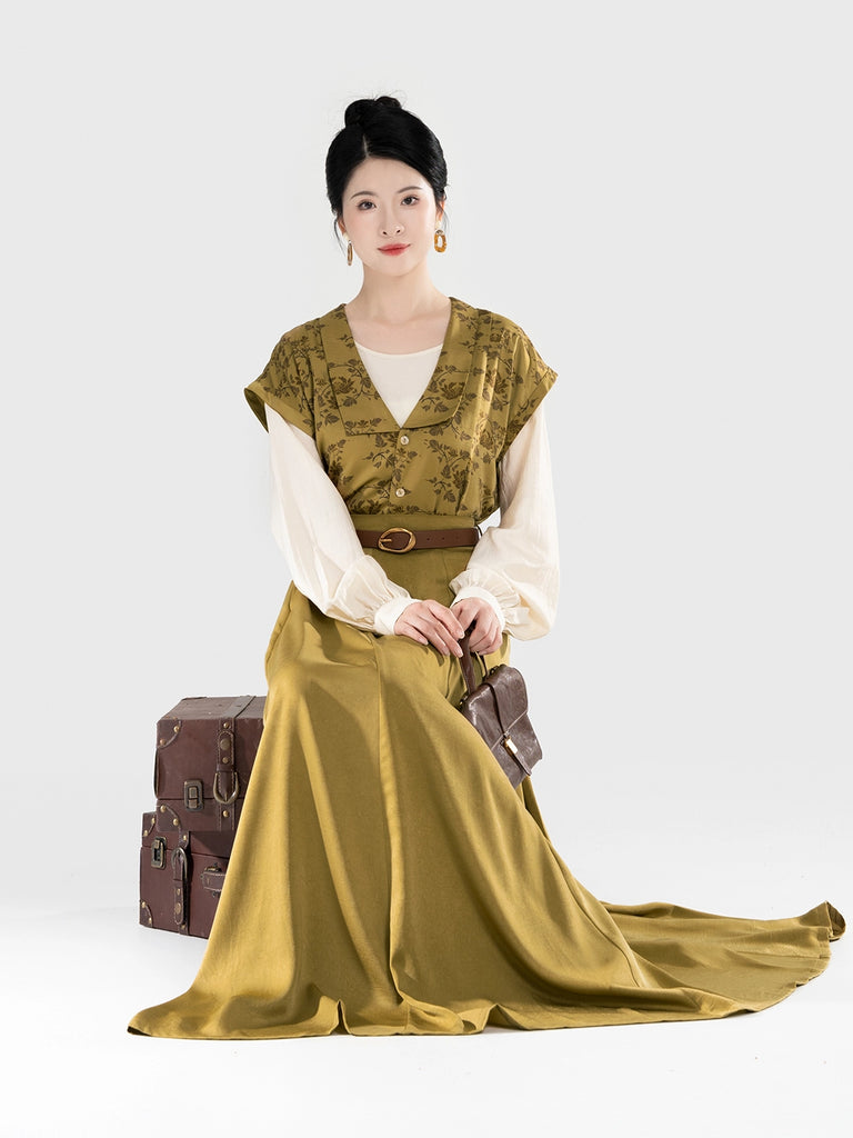 Tang Dynasty Modern Hanfu Set with Beizi Overlay & Flowing Eight-Panel Skirt - Twilight Harbor 暮港 (Preorder)