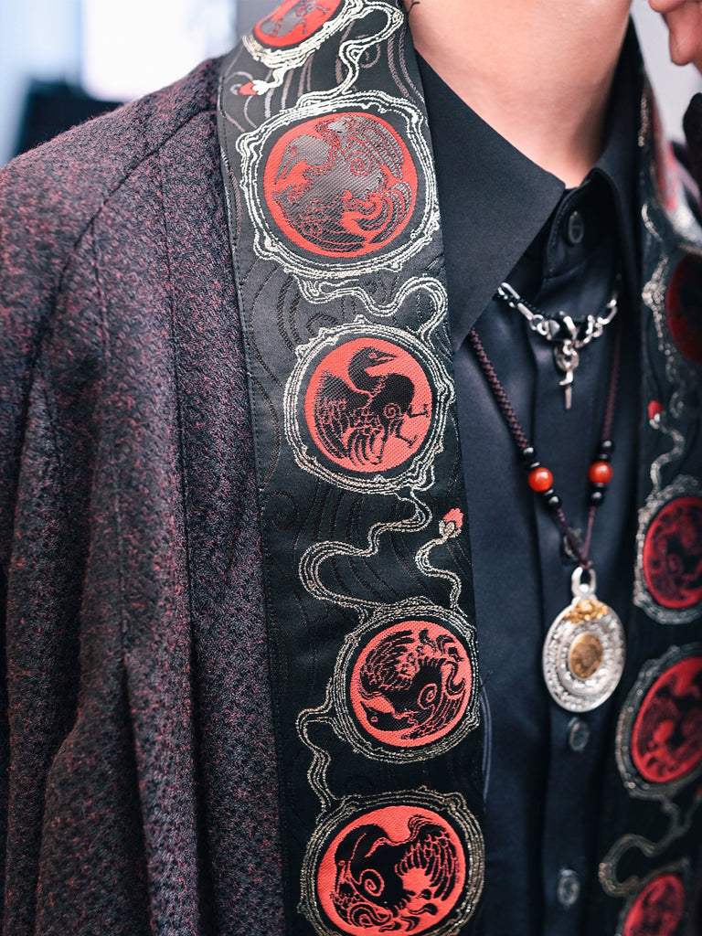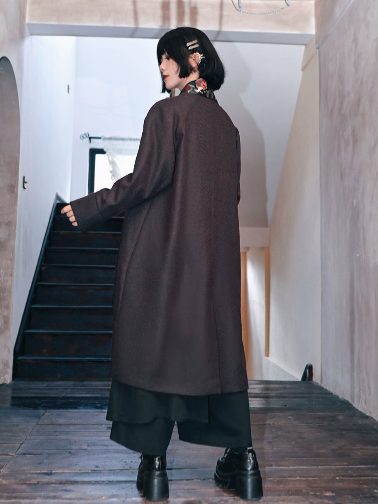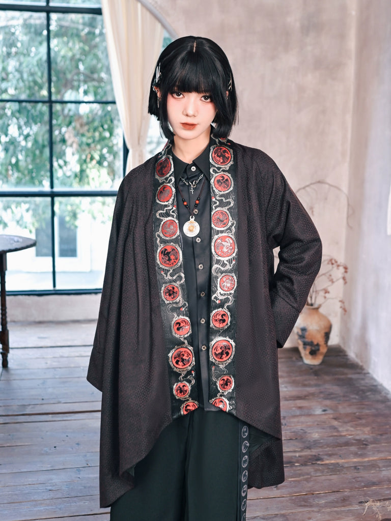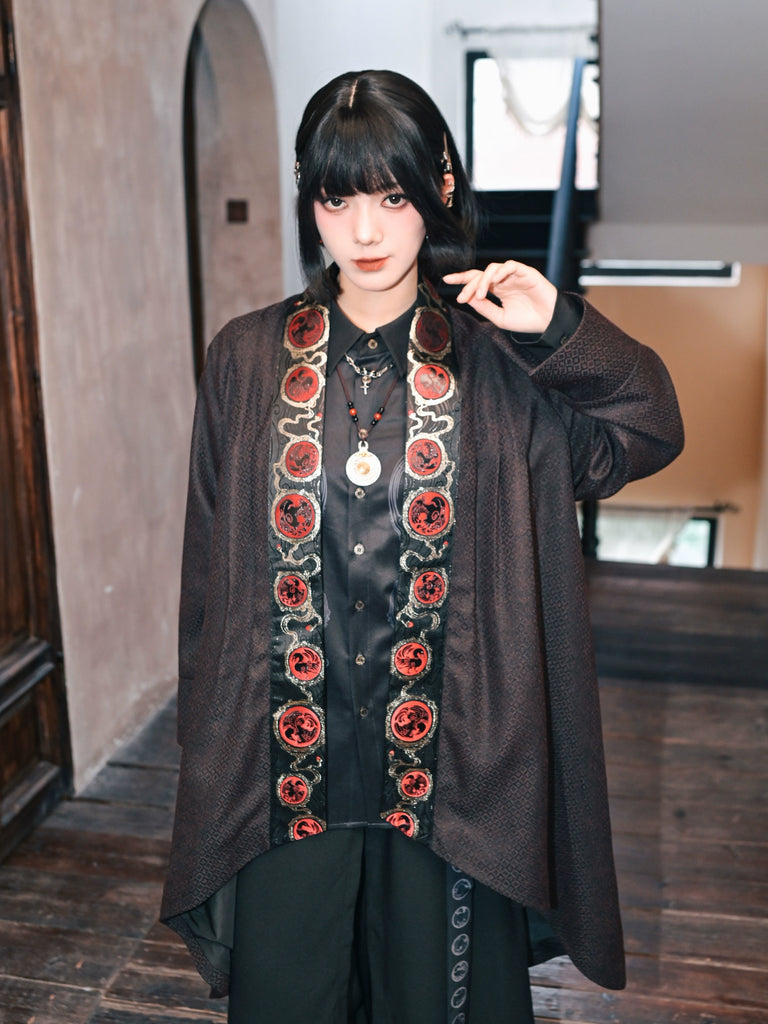 Golden Crow 金乌 - Long Cardigan Coat Hanfu Chinese Style Irregular Loose Dark Patterned Jacket