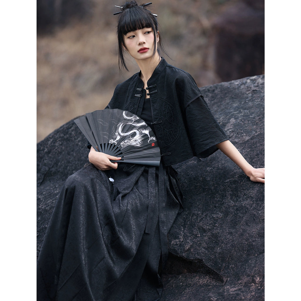 New Chinese Style Buckle Top Retro Dark Pattern Crop Top