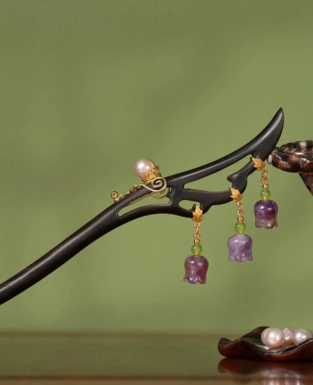 Hanfu hair accessories can vary widely in style, material, and design, but they all serve the purpose of enhancing the wearer's appearance and adding an extra touch of elegance to their hair. Some notable hair accessories commonly associated with Hanfu are hairpins (发簪, fāzān), hair combs (发篦, fābì), tassels (流苏, liúsū), hair ornaments (发髻, fājì), hairbands and headpieces (发饰, fāshì).